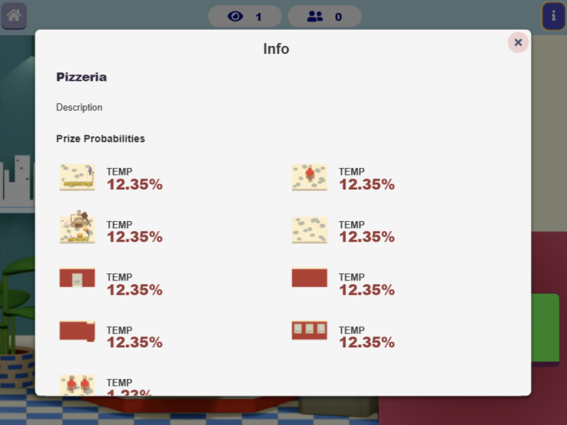 - The combination of walls, zones, characters and decorations will give your business a rating. Rating will determine something (TBD :D)